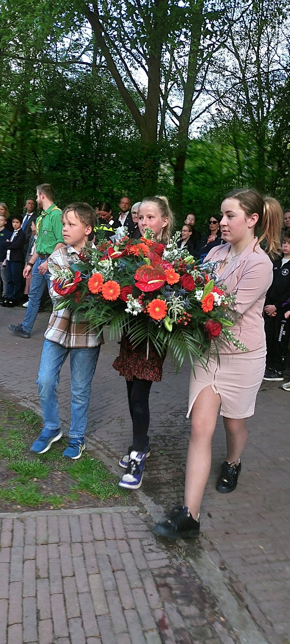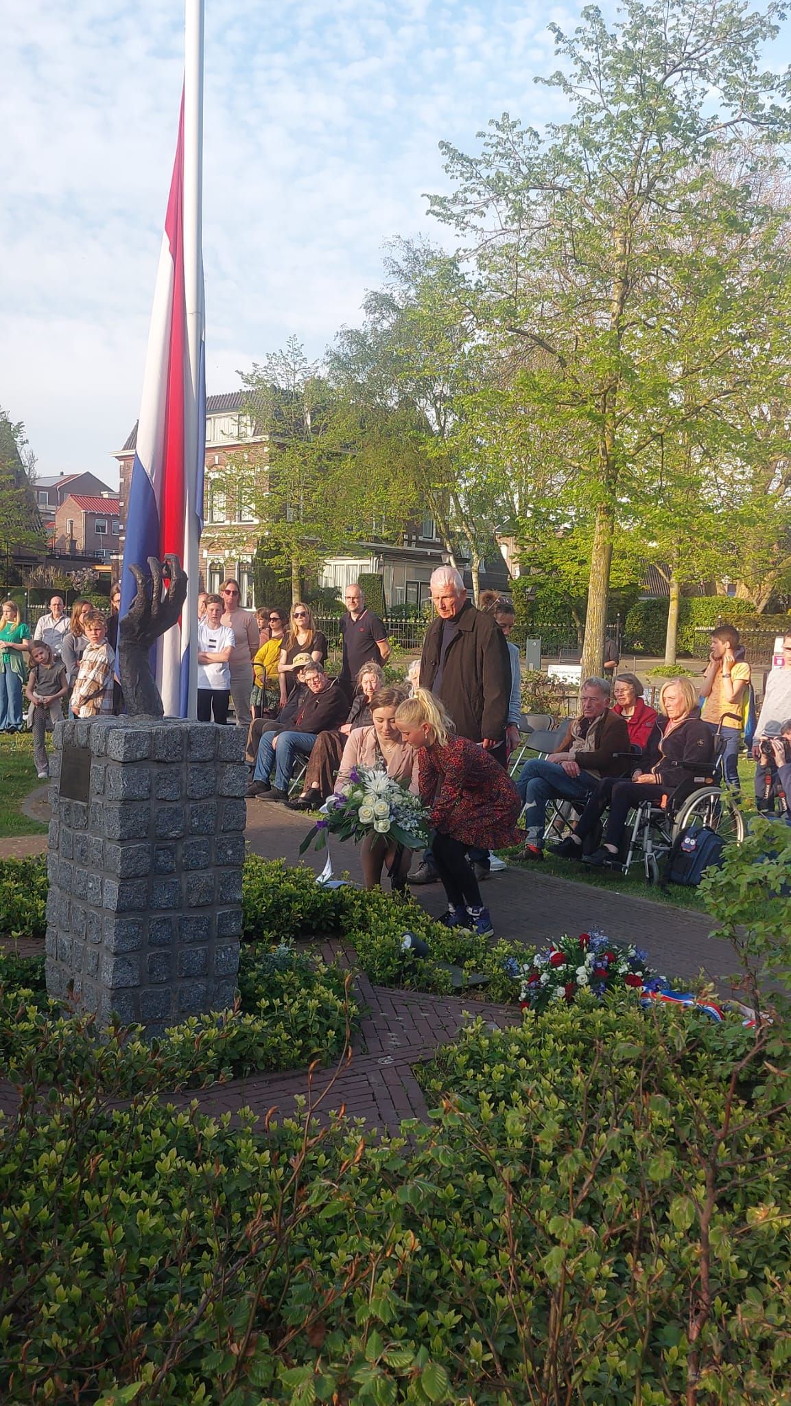 Traditioneel zijn we als school jaarlijks aanwezig bij Nationale Dodenherdenking op 4 mei. Noa en Benthe hebben het, namens alle openbare scholen in de Hoeksche Waard (verenigd binnen De Hoeksche School), supergoed gedaan. Eerst legden ze bloemen bij het Joods gedenkteken aan de Bierkade in het centrum en na de stille tocht richting het Laningpark werd bij het monument ‘Vrij’ ook een prachtig bloemstuk gelegd.