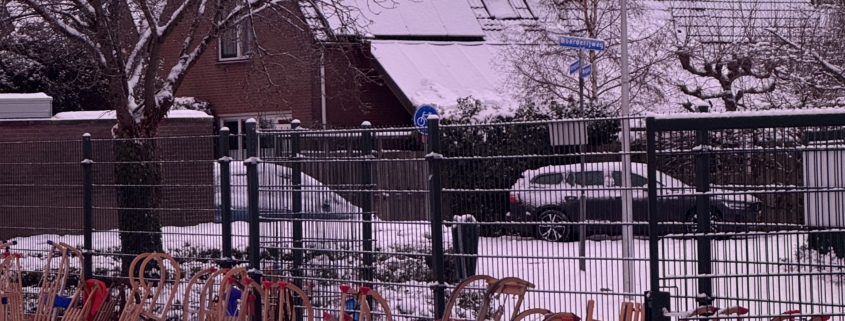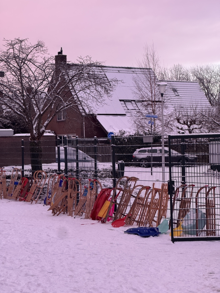 Groepen 1 en 2 hebben heerlijk met en in de sneeuw dichtbij school gespeeld. Wat een heerlijke ochtend!