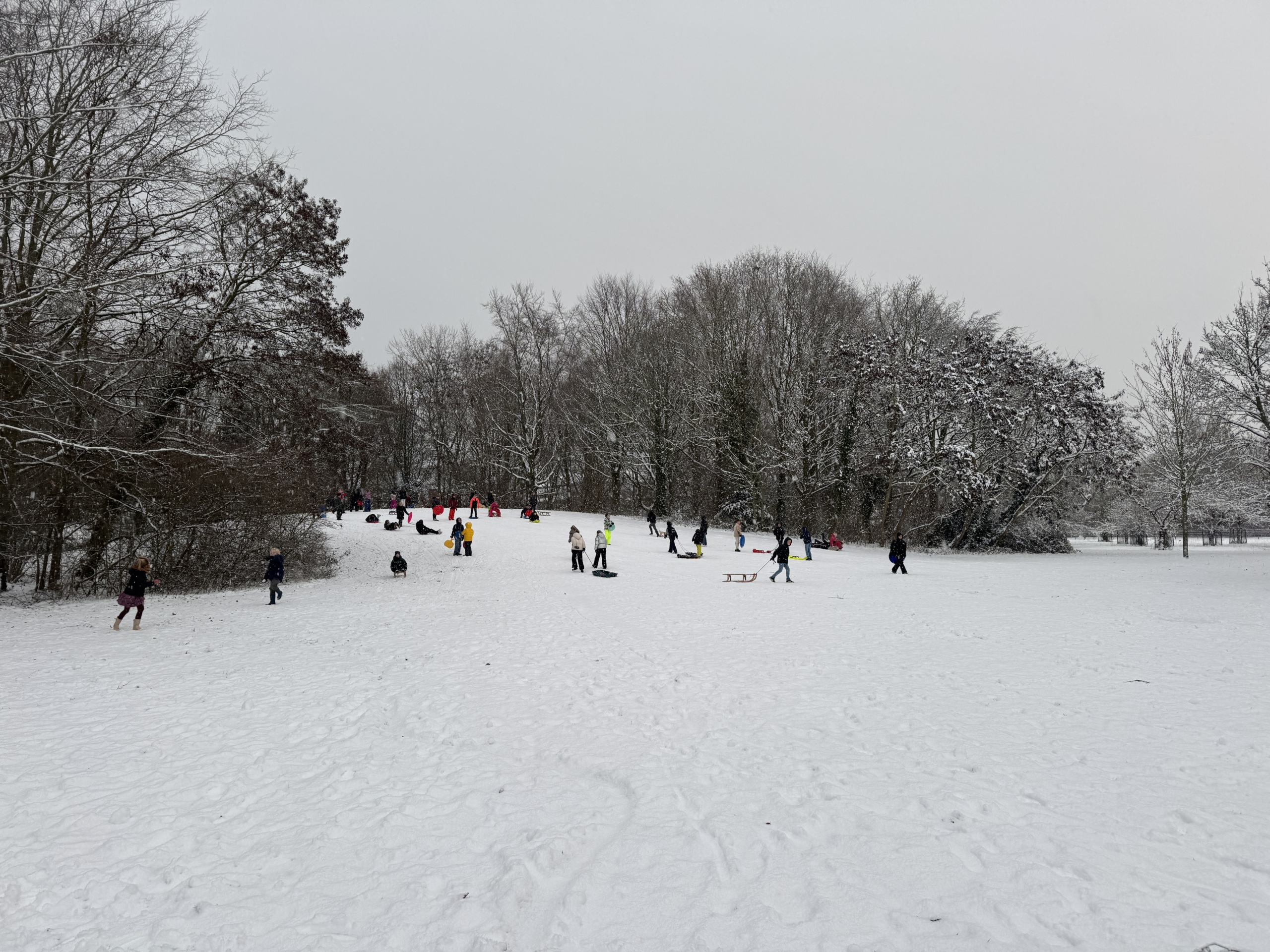 Vandaag gingen groepen 3 t/m 8 ‘gymmen’ in het Laningpark. Op de slee van de heuvel glijden en vooral heel veel lol maken met elkaar.